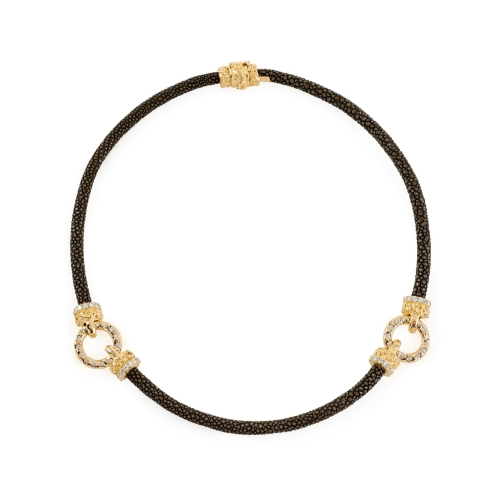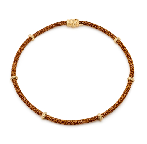 5mm "Caramel" Stingray Necklace with Cognac Diamond Double "Laura" Rondelles & "Laura" Rondelle Magnetic Clasp
